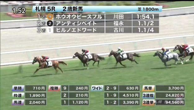 ◎ダイメイプリンセス(9人気)1着 単勝3,080円、複勝610円 - 8/18【札幌1R】2歳未勝利