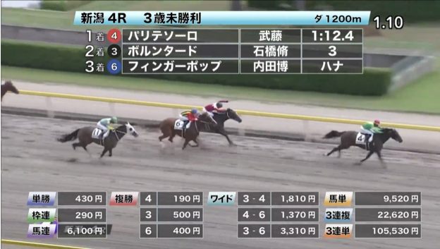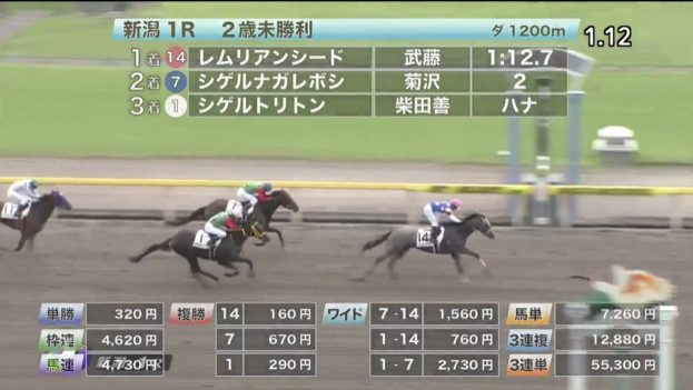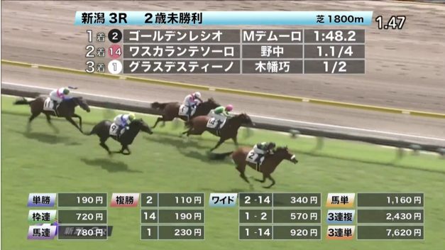 ◎ショウナンバレリオ(6人気)1着 単勝2,690円、複勝580円 - 8/17【新潟7R】3歳未勝利