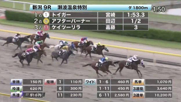 先々週の結果には及びませんでしたが、的中率は40%を超えるなど好調をキープすることができました。8月も土曜日を残すのみとなりましたが良い形で9月に繋いでいきたいと思います。