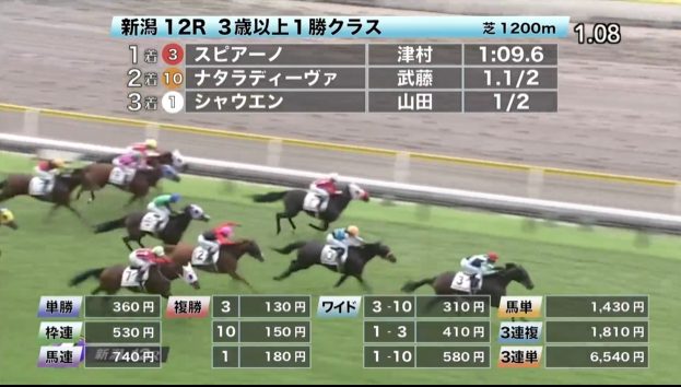 ◎ラインジュピター(7人気)3着 複勝360円 - 8/17【新潟10R】麒麟山特別