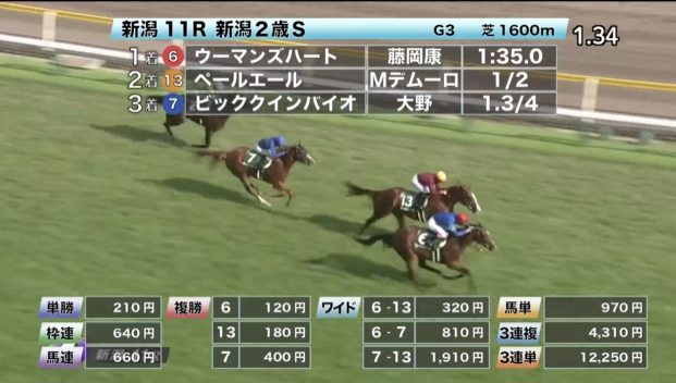 新潟競馬は土日で12Rの的中でした。新潟2歳Sでは◎ビッククインバイオが8番人気で3着に好走するなど土日を通じて好成績を残すことができました。