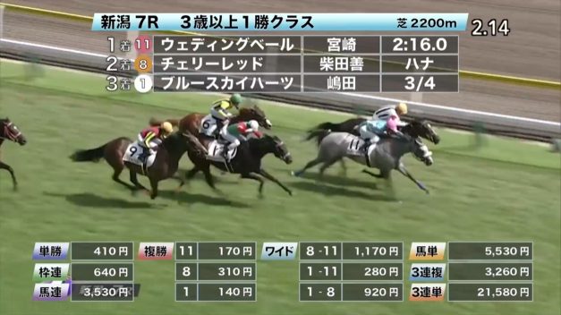 ◎カシノブレンド(7人気)1着 単勝2,270円、複勝280円 - 8/11【新潟7R】3歳以上1勝クラス