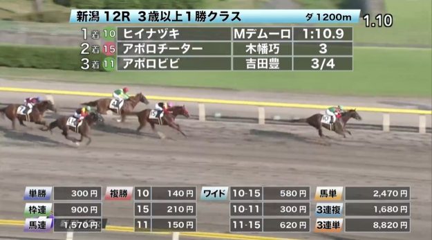 ◎ホウオウビクトリー(6人気)3着 複勝370円 - 8/25【新潟7R】3歳以上1勝クラス