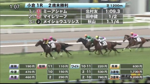 ◎ソウルユニバンス(5人気)2着 複勝200円 - 8/18【小倉4R】3歳未勝利