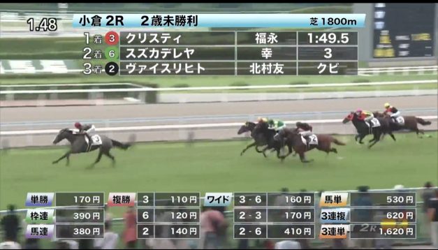 ◎クルークハイト(4人気)1着 単勝880円、複勝170円 - 8/24【札幌2R】2歳未勝利