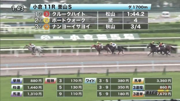 ◎ルンルンクオリティ(5人気)1着 単勝1,080円、複勝220円 - 8/17【小倉8R】3歳以上1勝クラス