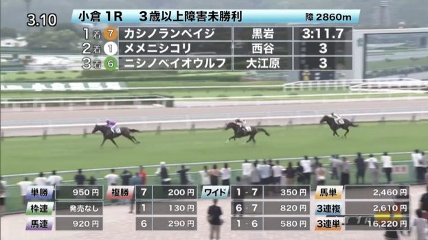 ◎カシノランペイジ(5人気)1着 単勝950円、複勝200円