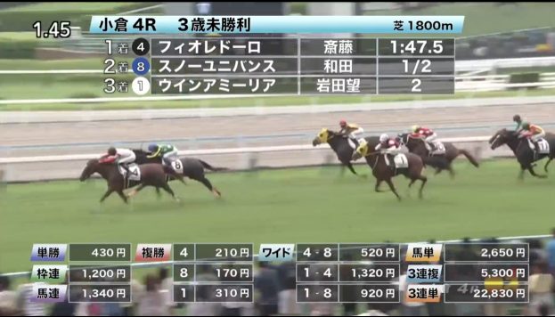 ◎ウインアミーリア(8人気)3着 複勝580円 - 8/10【小倉8R】3歳以上1勝クラス