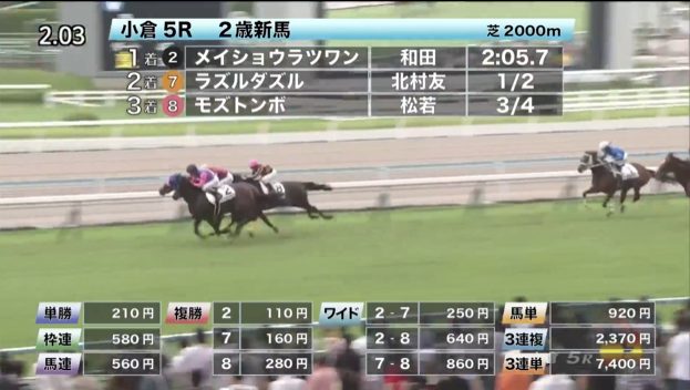 ◎ベルウッドコチョウ(8人気)2着 複勝1,210円 - 8/10【小倉2R】2歳未勝利