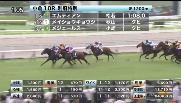 ◎エムティアン(6人気)1着 単勝1,390円、複勝470円 - 8/25【小倉11R】小倉日経オープン