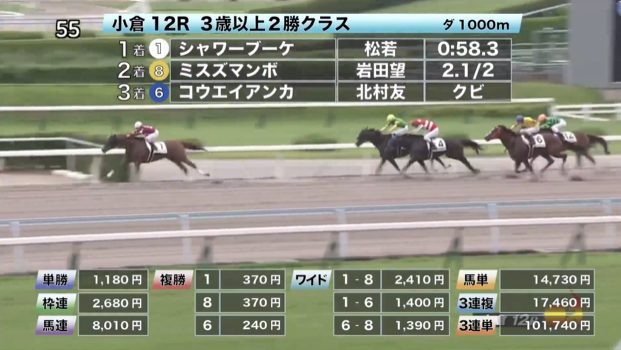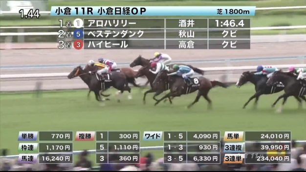 ◎オーヴェルニュ(11人気)2着 複勝890円 - 8/17【小倉9R】英彦山特別