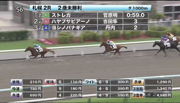 ◎ハヤブサピアーノ(4人気)2着 複勝180円 - 8/24【札幌3R】3歳未勝利