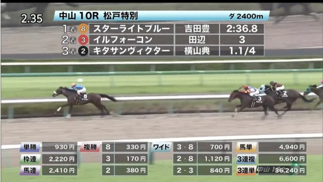 ◎スターライトブルー(5人気)1着 単勝930円、複勝330円