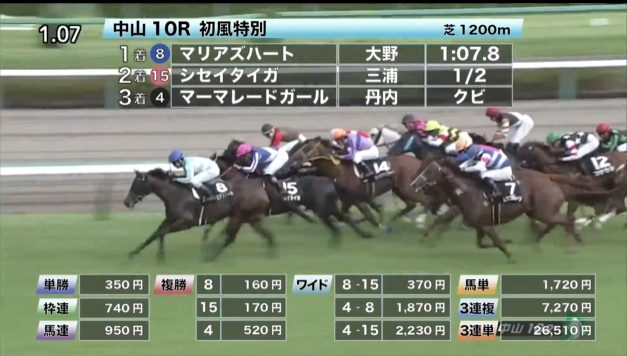 中山競馬の穴馬的中結果