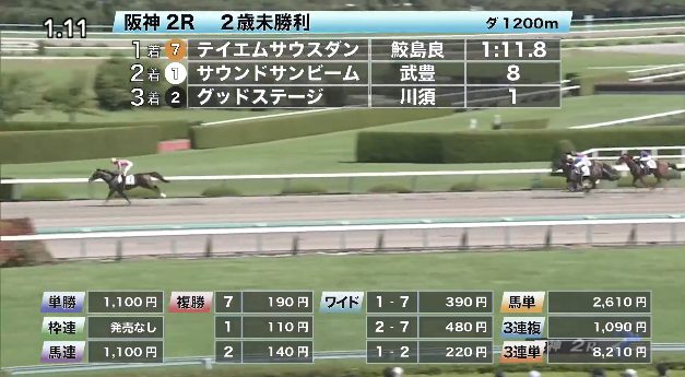 ◎テイエムサウスダン(5人気)1着 単勝1,100円、複勝190円 - 9/14【阪神3R】2歳未勝利