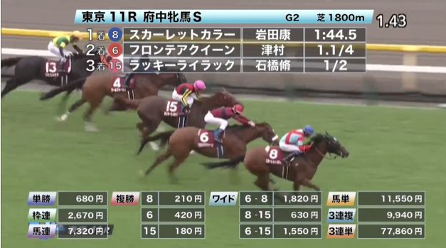 ◎トラストケンシン(6人気)2着 複勝390円 - 10/6【東京12R】3歳以上2勝クラス