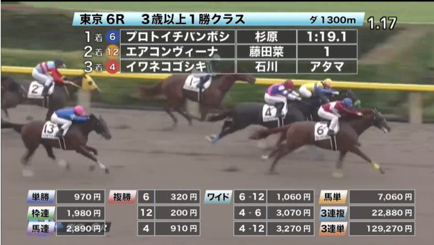 ◎プロトイチバンボシ(5人気)1着 単勝970円、複勝320円