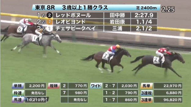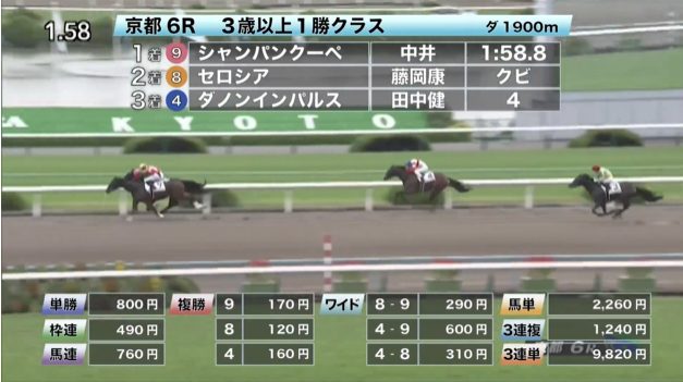 ◎ダノンロイヤル(7人気)1着 単勝1,620円、複勝470円
