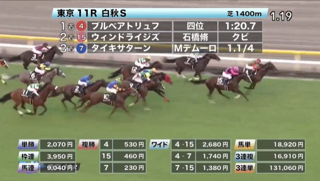 ◎ウィンドライジズ(6人気)2着 複勝460円 - 10/15【東京12R】3歳以上1勝クラス