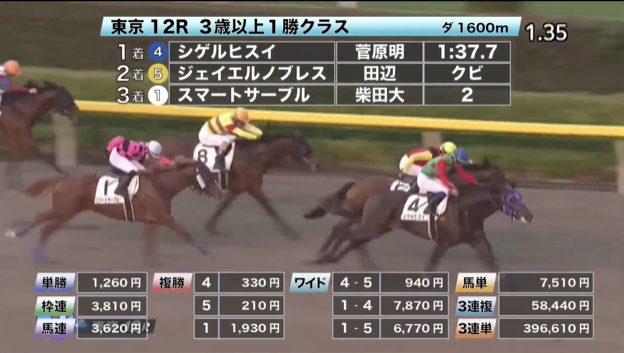 ◎シゲルピンクダイヤ(10人気)3着 複勝550円