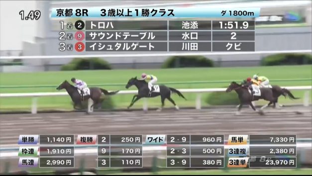 ◎トロハ(5人気)1着 単勝1,140円、複勝250円