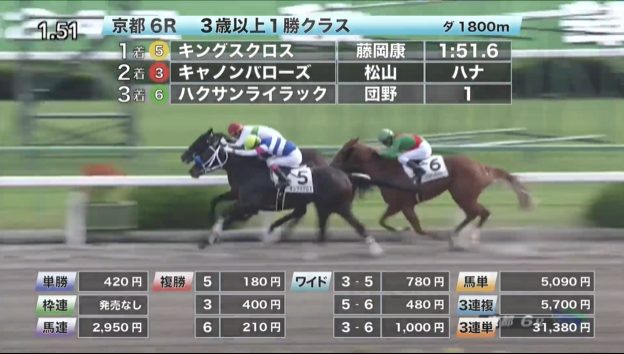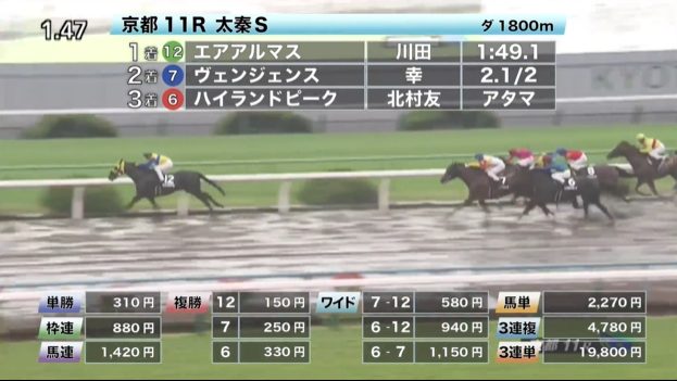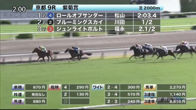 ◎ロールオブサンダー(6人気)1着 単勝870円、複勝290円