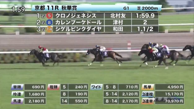 ◎ロールオブサンダー(6人気)1着 単勝870円、複勝290円 - 10/13【京都11R】秋華賞