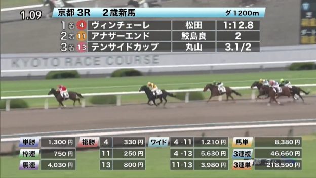 ◎ヴィンチェーレ(6人気)1着 単勝1,300円、複勝330円