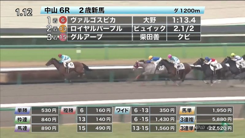 ◎ブラッククローバー(10人気)3着 複勝660円 - 12/1【中山12R】3歳以上2勝クラス