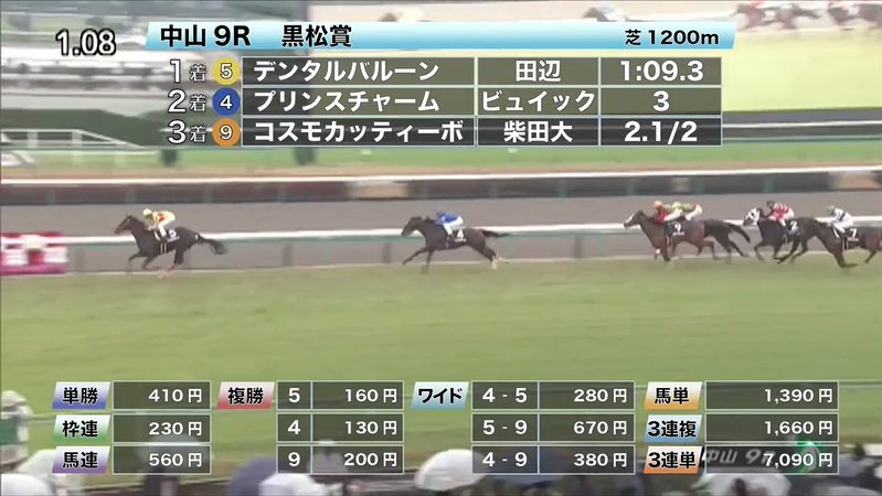 ◎カーサデルシエロ(5人気)3着 複勝250円