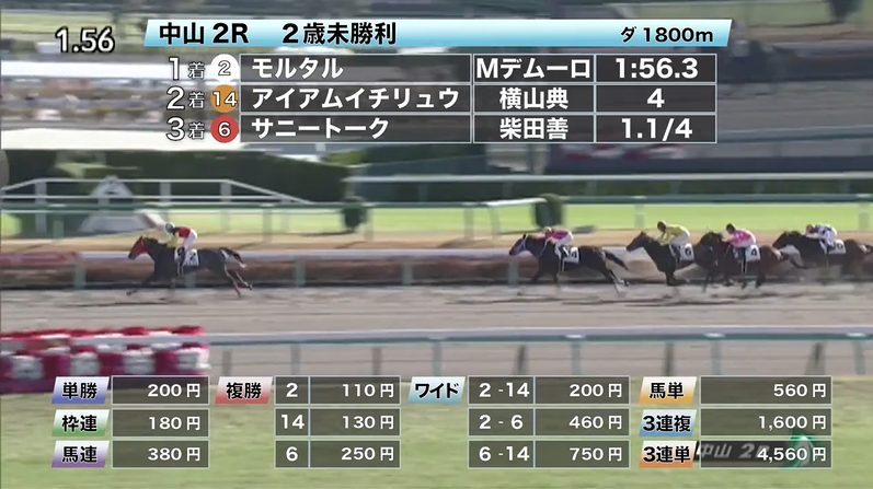 ◎サニートーク(5人気)3着 複勝250円 - 12/8【中山5R】2歳新馬