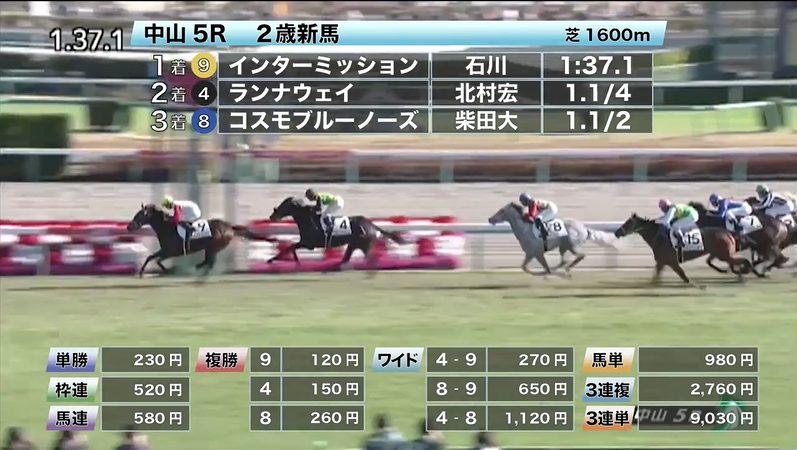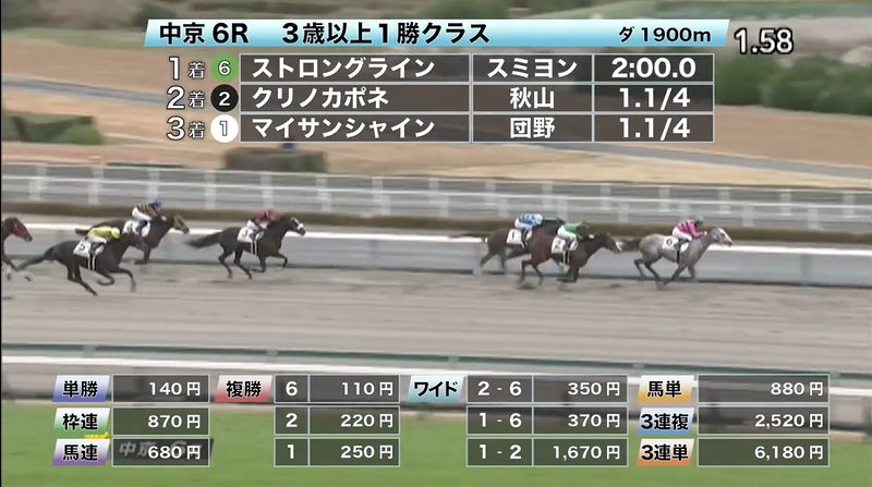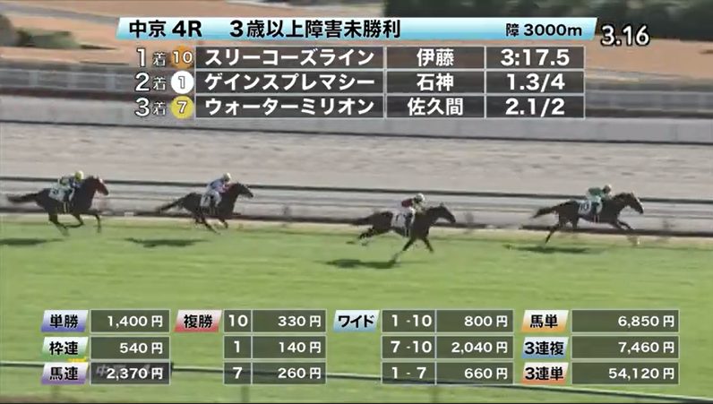 ◎スリーコーズライン(5人気)1着 単勝1,400円、複勝330円