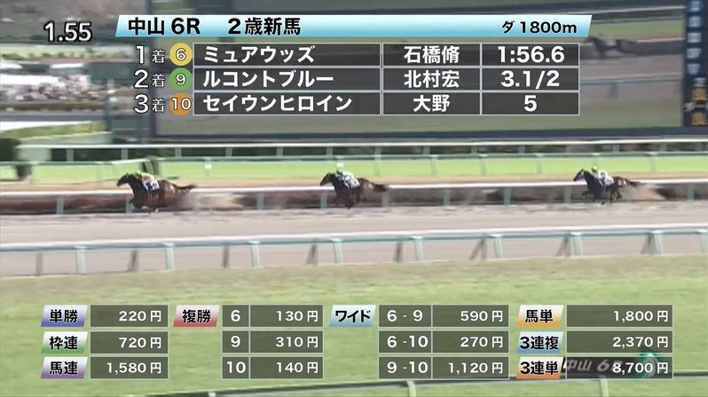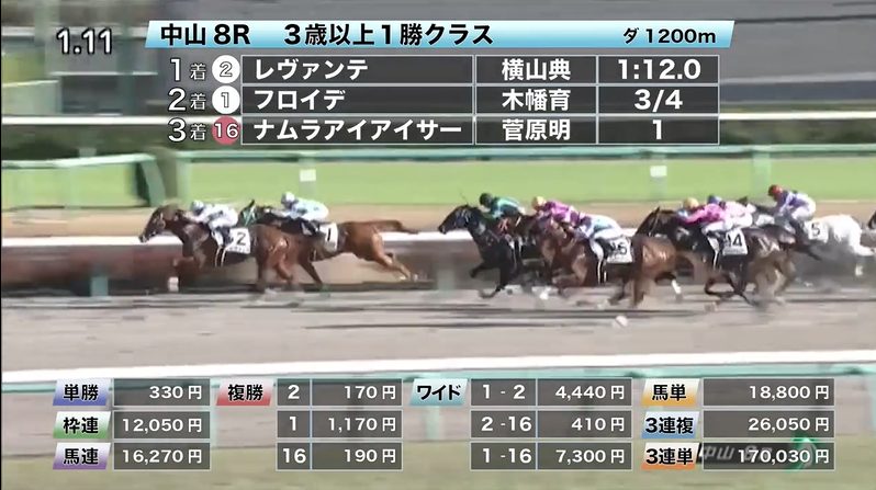◎ルコントブルー(6人気)2着 複勝310円 - 12/8【中山8R】3歳以上1勝クラス