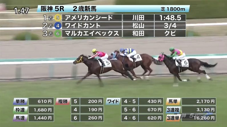 ◎コンウィ(4人気)2着 複勝410円 - 12/7【阪神7R】2歳未勝利