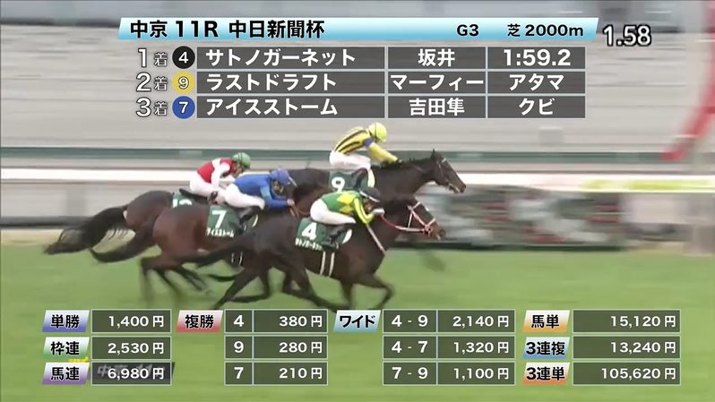 ◎ニーズヘッグ(5人気)3着 複勝270円
