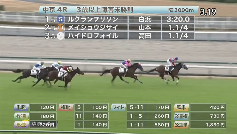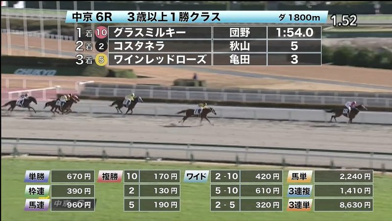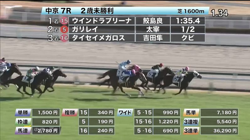 ◎グランマリアージュ(4人気)1着 単勝1,300円、複勝180円