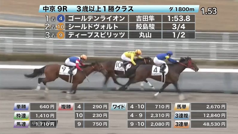 ◎ディープスピリッツ(8人気)3着 複勝750円