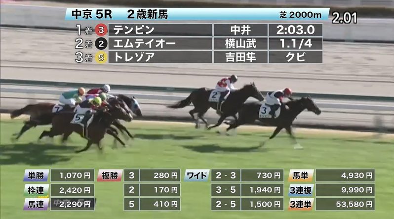 ◎スリーコーズライン(5人気)1着 単勝1,400円、複勝330円 - 12/8【中京5R】2歳新馬