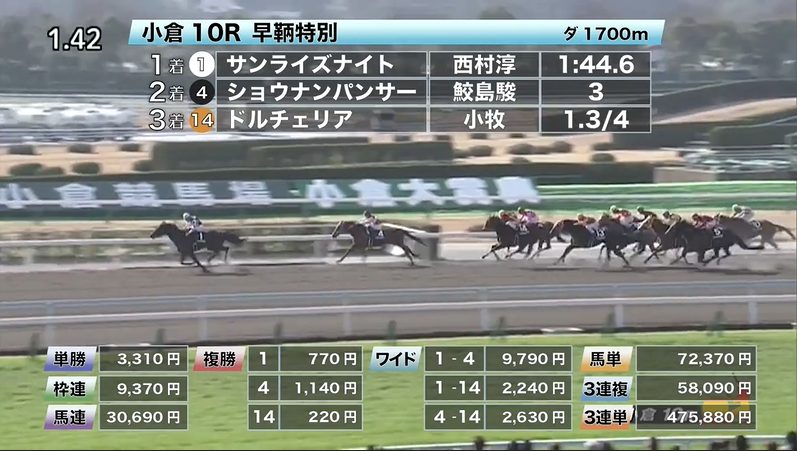 ◎サンライズナイト(9人気)1着 単勝3,310円、複勝770円![]()
