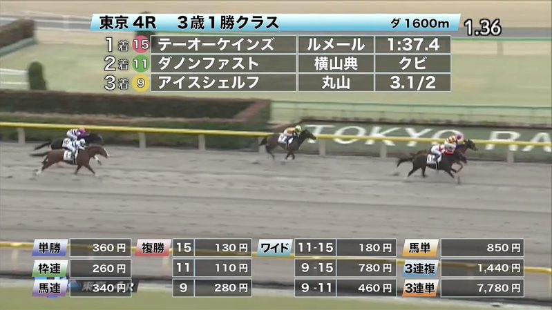 - 2/15【東京4R】3歳1勝クラス