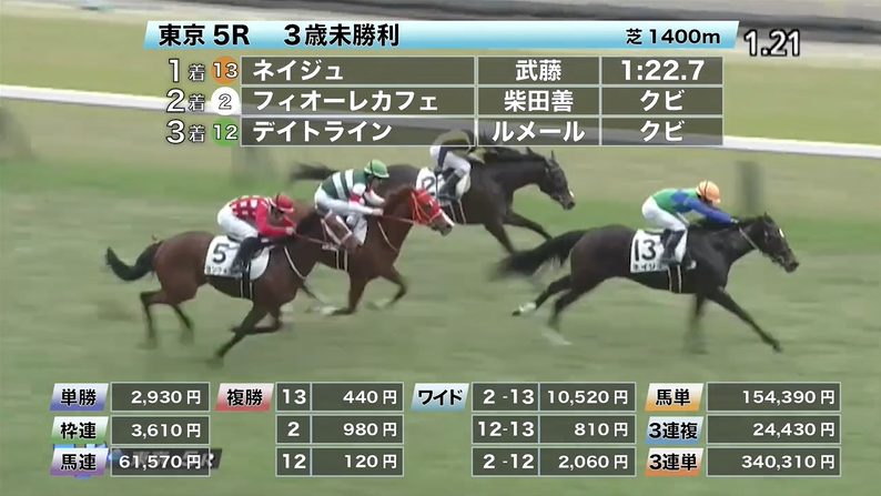 ◎ネイジュ(7人気)1着 単勝2,930円、複勝440円 - 2/15【東京6R】3歳新馬