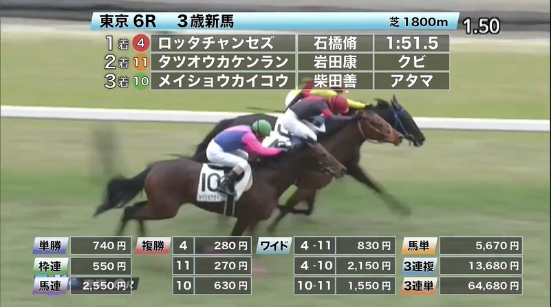 東京競馬の穴馬的中結果