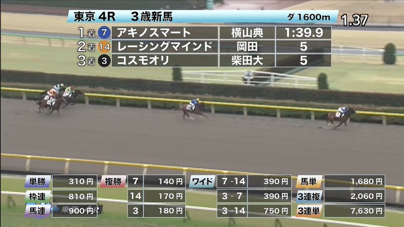 - 2/15【東京7R】4歳以上1勝クラス