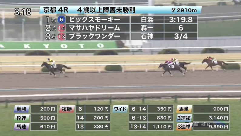 ◎ライトウォーリア(5人気)1着 単勝760円、複勝220円 - 2/2【京都4R】4歳以上障害未勝利