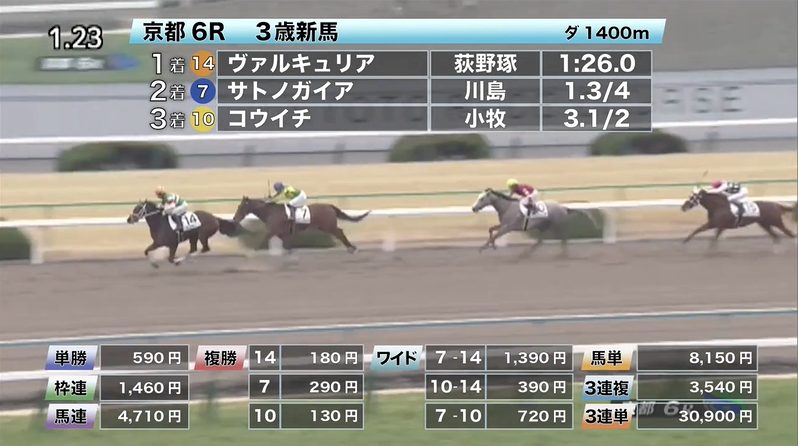 ◎ヴァルキュリア(3人気)1着 単勝590円、複勝180円