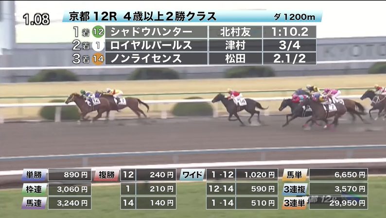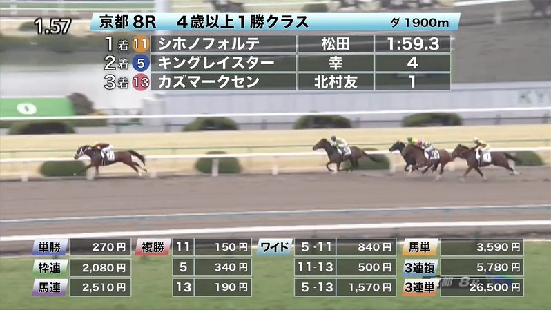 京都競馬の穴馬的中結果
