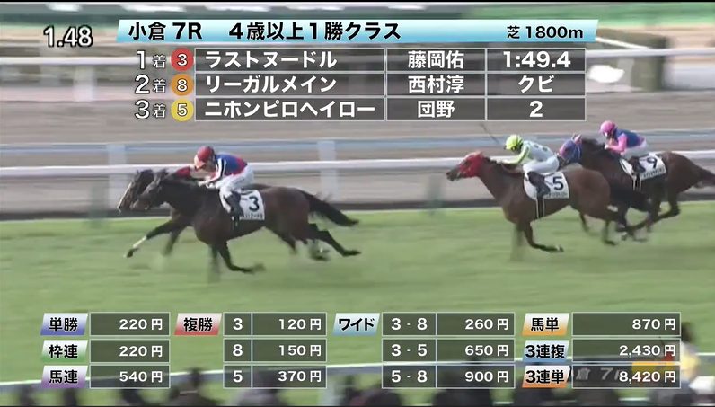 ◎スリーチェイサー(7人気)3着 複勝430円 - 2/2【小倉7R】4歳以上1勝クラス