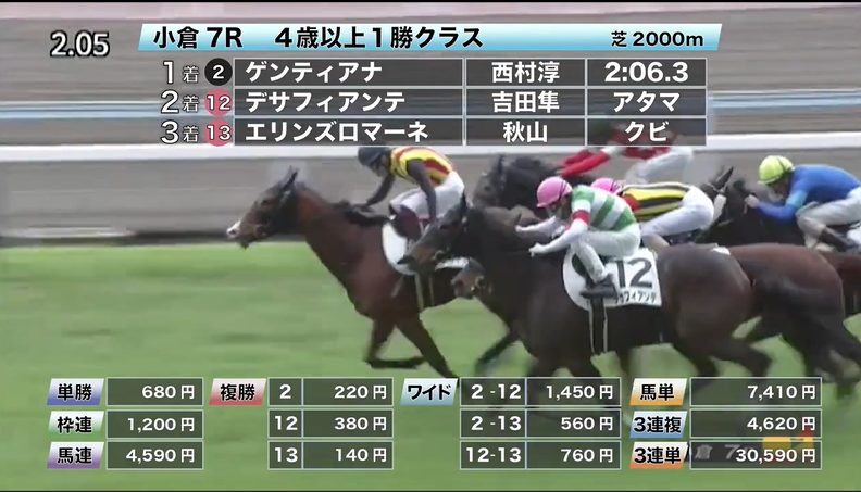 小倉競馬の穴馬的中結果