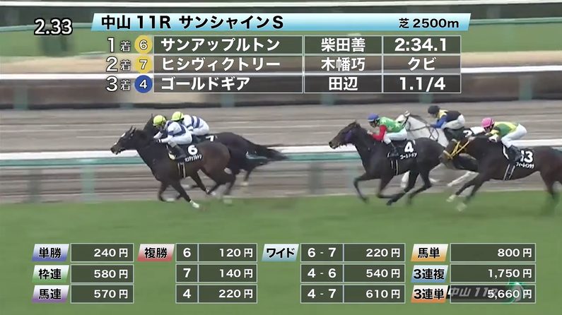 ◎ゴールドギア(4人気)3着 複勝220円 - 2/29【中山12R】4歳以上2勝クラス