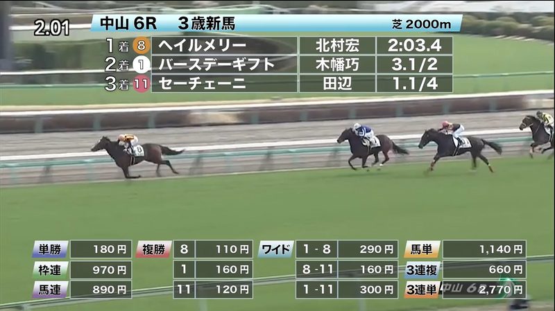 ◎アースコレクション(9人気)2着 複勝1,100円 - 3/1【中山8R】4歳以上2勝クラス